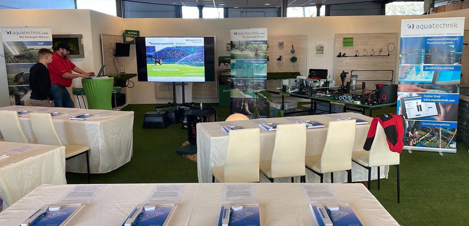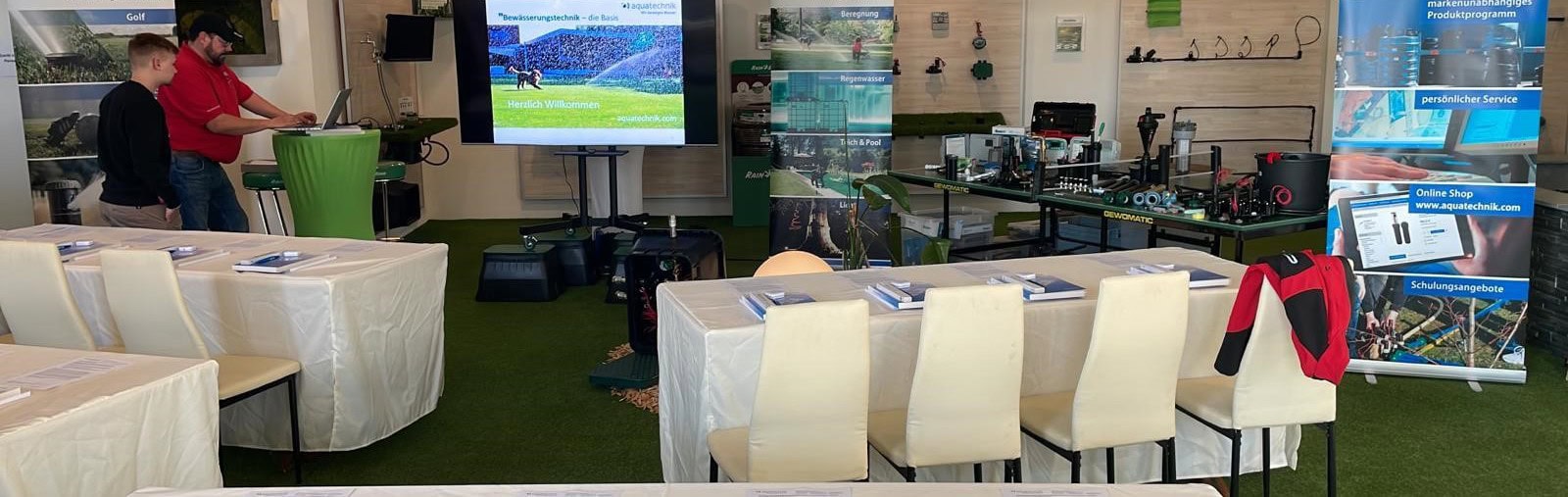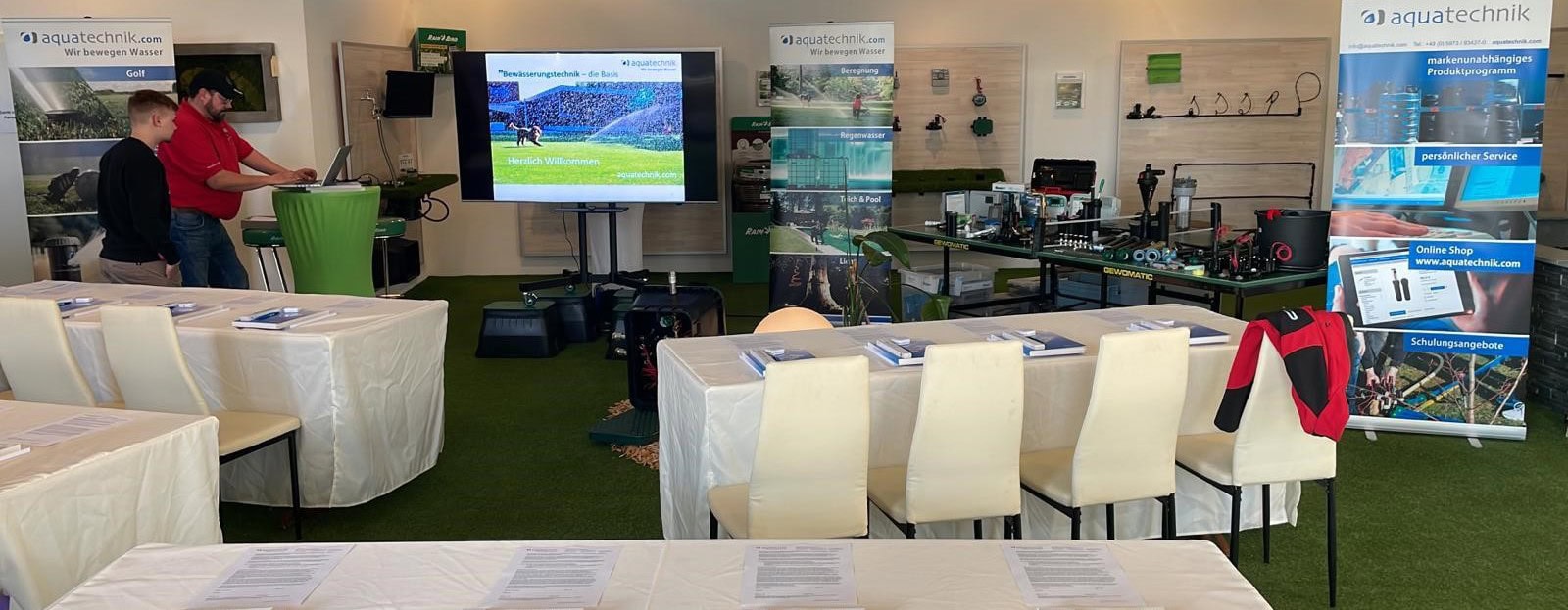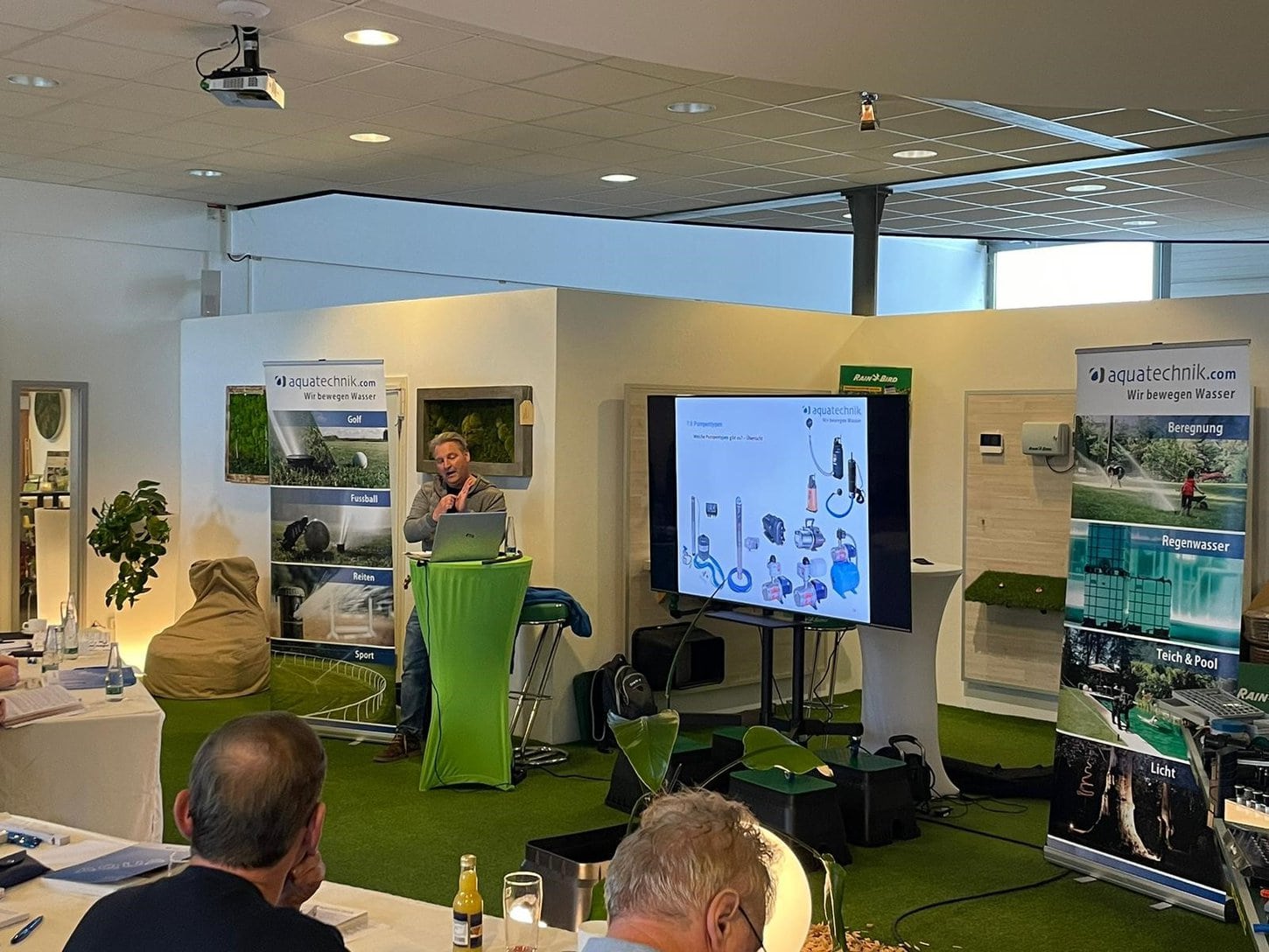 Am 09.+10.02.2023 begrüßten wir Herzlich 2 Mitarbeiter der Firma Aquatechnik Beregnungsanlagen aus Wettringen zur Schulung bei uns im Hause. Die Schulung war mit rund 20 Teilnehmern gut besucht. Am ersten Tag wurden die Grundkenntnisse zum Aufbau einer Beregnungsanlage vermittelt; am zweiten Tag ging es für Fortgeschrittene tiefer in die Materie, hierbei wurden Themen wie Pumpentechnik, Steuerungstechnik, Beregnungsplanung sowie Tipps aus der Praxis intensiv behandelt.